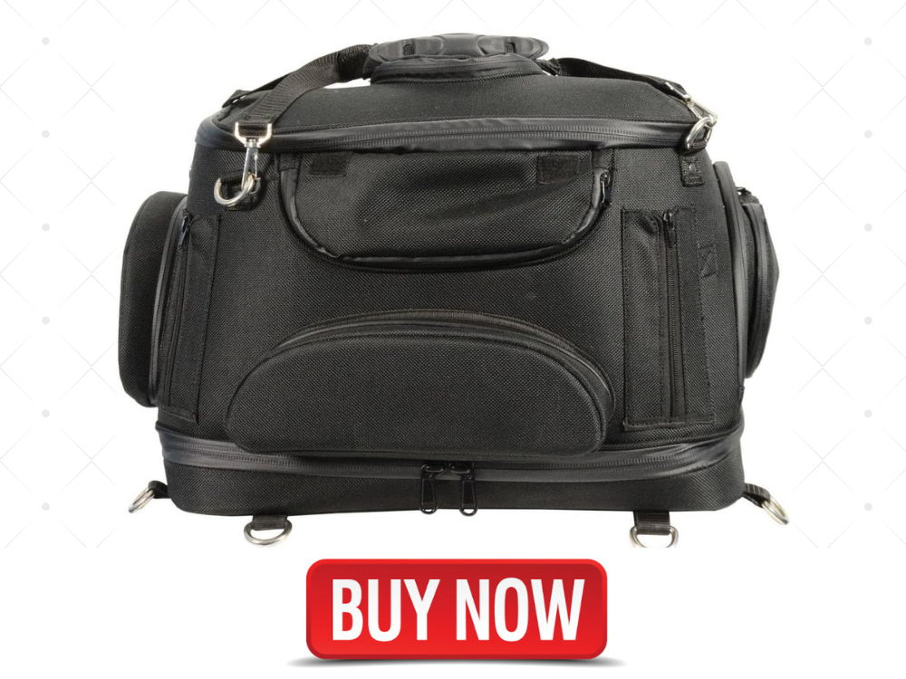 Saddlemen Motorcycle Pet Carrier is an ideal and all-weather motorcycle pet carrier for dogs made with the comfort of small dogs in mind. Its two mounting systems, along with adjustable straps, keep it sturdy. It’s water-resistant and made to last for a long time. An effective cargo bag equipped with a removable tray that can be washed to clean and an ultra-comfortable bed inside keeps the dog relaxed, and its vents allow fresh air inside.